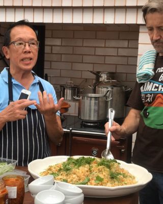 To live up to the name of the event, tempoyak was prepared from durian, arguably the world’s most pungent fruit. Tempoyak is a Malay condiment, resulting when durian is salted and aged at room temperature, that develops notes of pineapple in the fermentation process. As a treat for the participants, Tony Tan tossed the tempoyak with steamed rice and fresh herbs such as kaffir lime leaves and coriander leaves.
